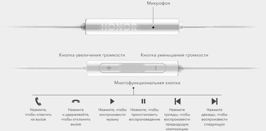 Наушники Проводные наушники с гарнитурой HONOR AM115, mini jack 3.5 mm, white