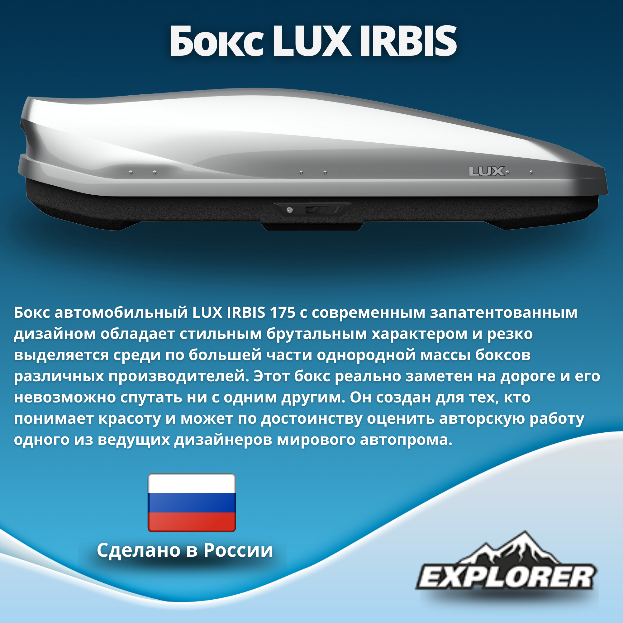 Бокс на крышу LUX IRBIS 175, 450л, белый глянец, 175х85х40, с двухсторонним открыванием, арт:LUX-791033 37 700 ₽ Подробнее