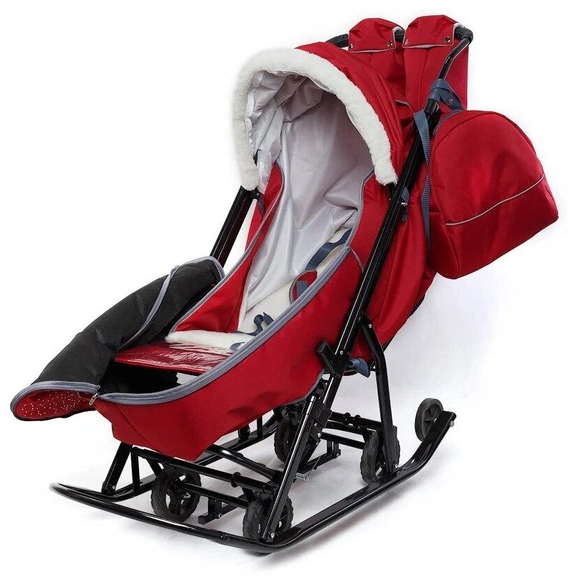 Санки-коляска "Снеговик" цвет: красный NEW 2021, Pikate