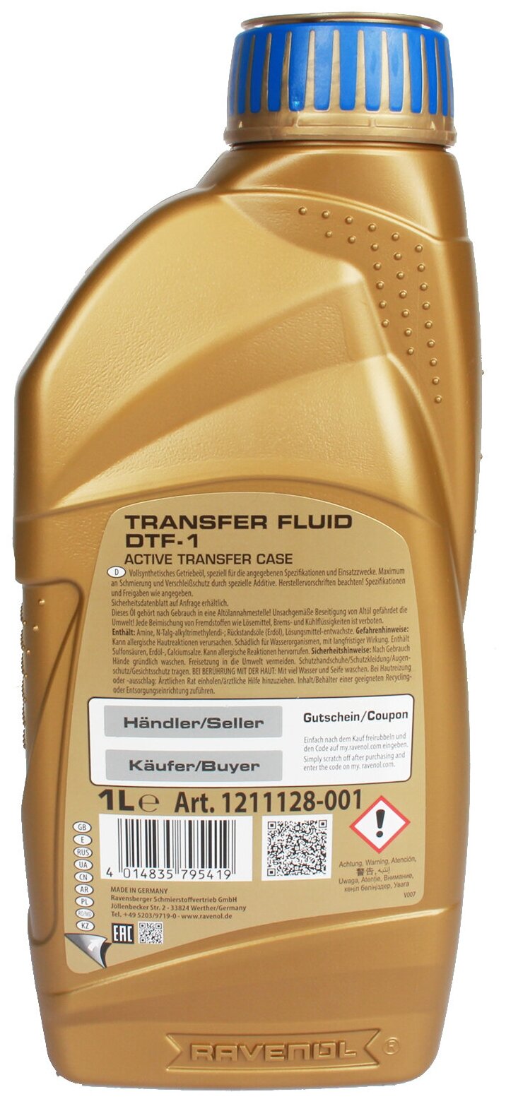 RAVENOL 1211128-001-01-999 Трансмиссионное масло RAVENOL Transfer Fluid DTF-1 (TF-0870) (1л)( замена 4014835795419) 1шт