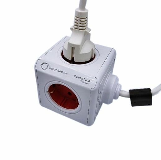 Сетевой удлинитель (фильтр) Allocacoc/DesignNest PowerCube Extended RED 1300RD/DEEXPC, 5 розеток, провод 1,5 метра, без USB, крепление в комплекте