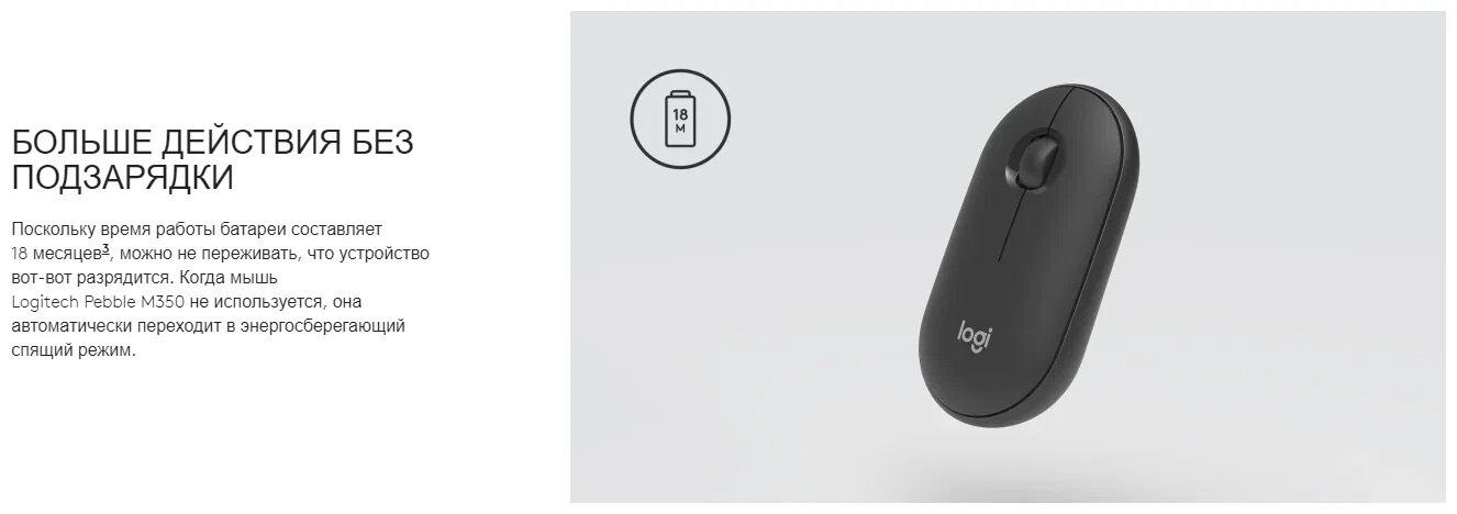 Мышь беспроводная Logitech Pebble M350 Gray Rock, графит (черный) 1 950 ₽ Подробнее