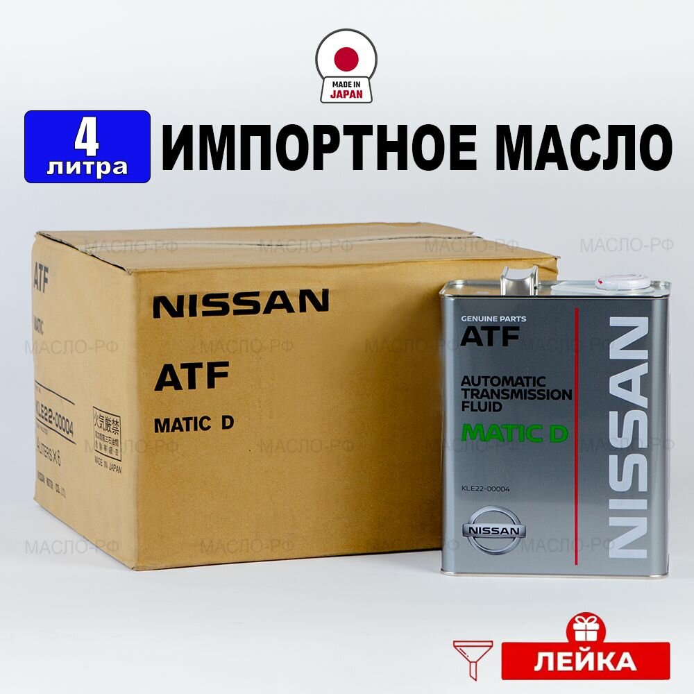 Трансмиссионные масла Масло трансмиссионное Nissan ATF (Япония) Matic-D (4л) + лейка, жидкость синтетика для легкового и грузового транспорта электронной АКПП Ниссан KLE2200004, РТЛ