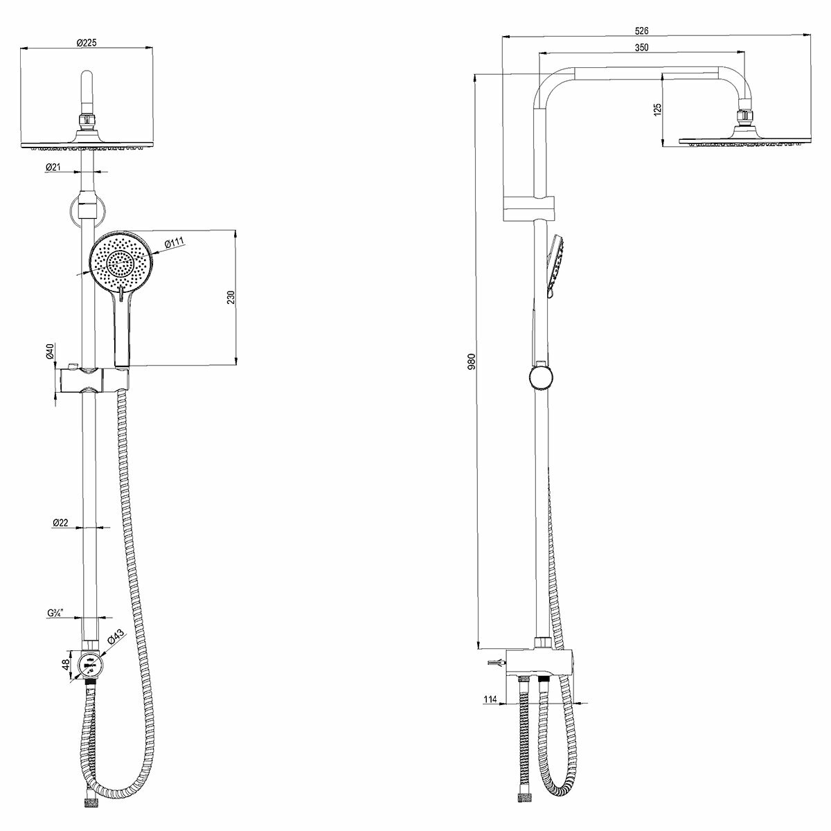 | Комплектация | ручной душ / верхний душ / стойка / штанга / душевой шланг / крепление ручного душа / мыльница |