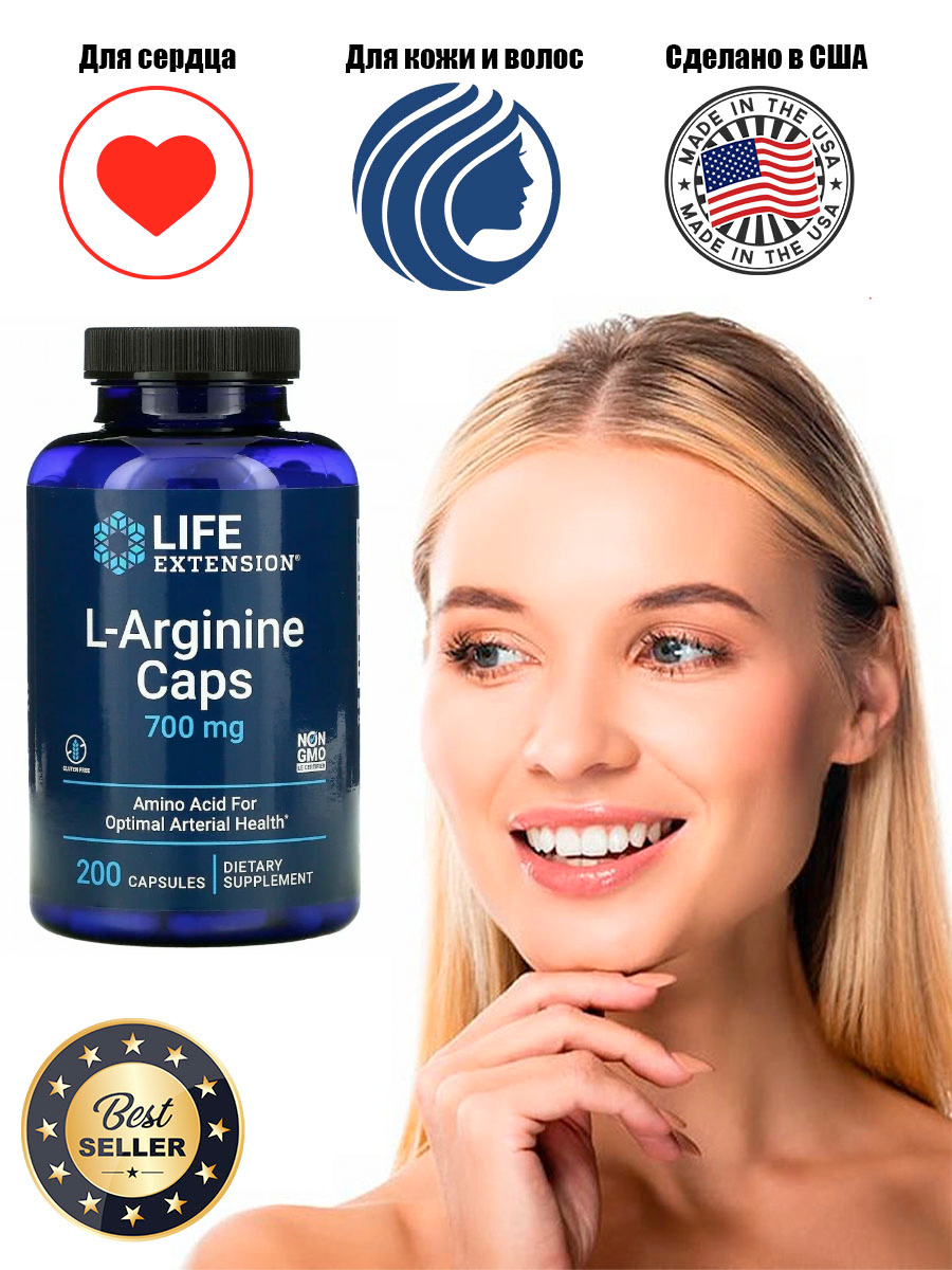 Аминокислота Life Extension L-Arginine Caps 700 mg, нейтральный, 200 шт.