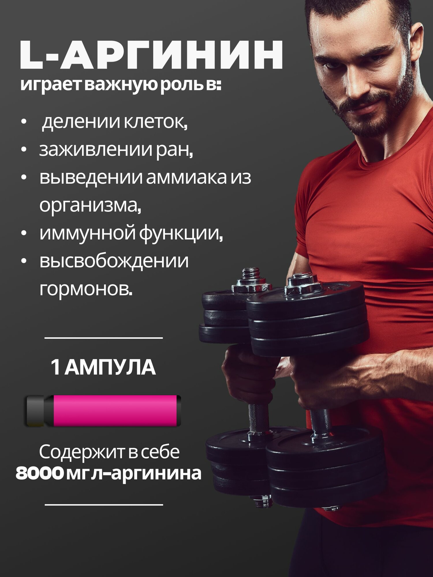 Аминокислоты L аргинин (arginine) 8000 мг спортивное питание аминокислоты, витамины для мышц и мужского здоровья с вкусом красный апельсин, 20 ампул по 25 мл