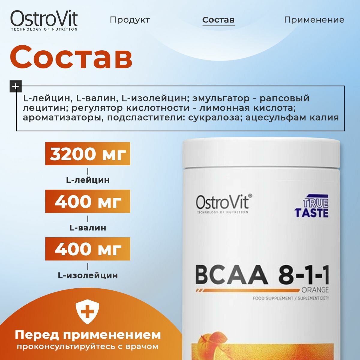 Аминокислоты БЦАА, Аминокислоты Ostrovit, BCAA 8:1:1, порошок 400г со вкусом апельсина