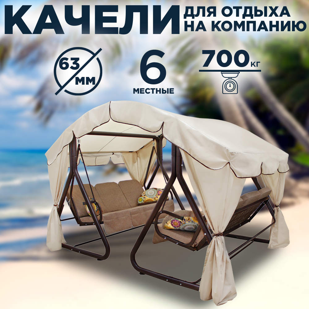 Садовая качель Садовые качели ТЕТ-А-ТЕТ автобиографи для дачи уличные 6-местные подвесные с тентом и москитной сеткой бежевый
