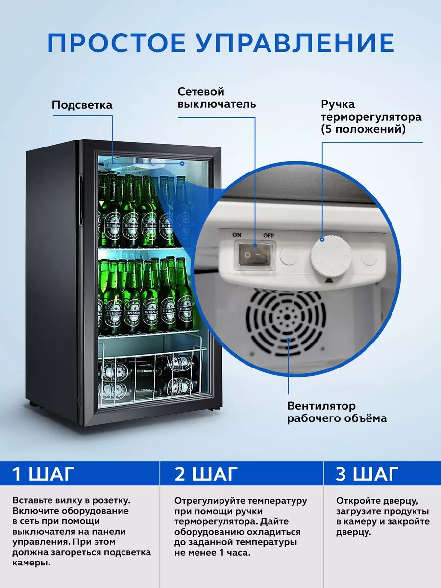 Холодильник Холодильник маленький для кухни минибар для напитков 98 л