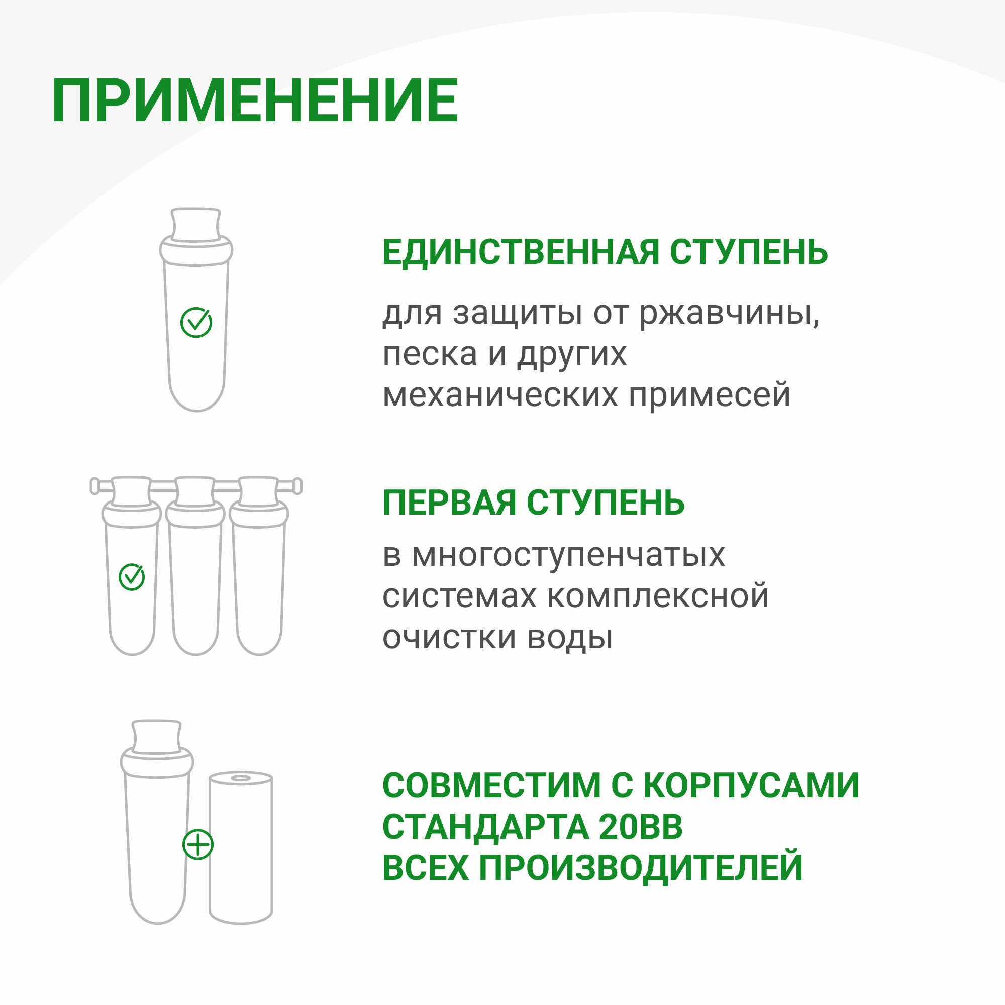 Картриджи для воды Картридж механический Гейзер PP 50 - 20BB, ресурс 800 000 литров, эффективная очистка воды от механических примесей, 28250