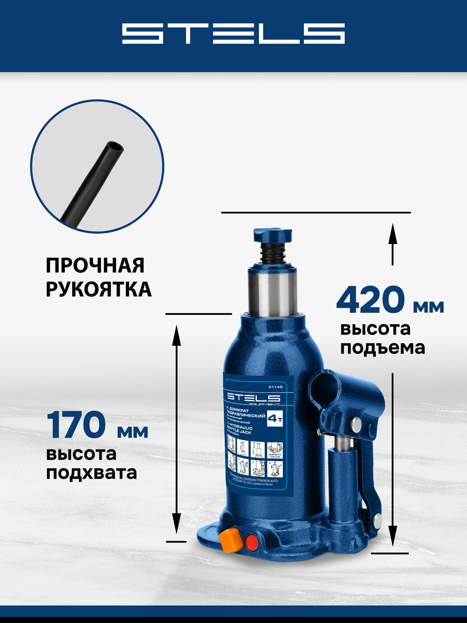 Домкрат гидравлический бутылочный Stels Equipment STELS 4 т, подъем 170-420 мм, 51145