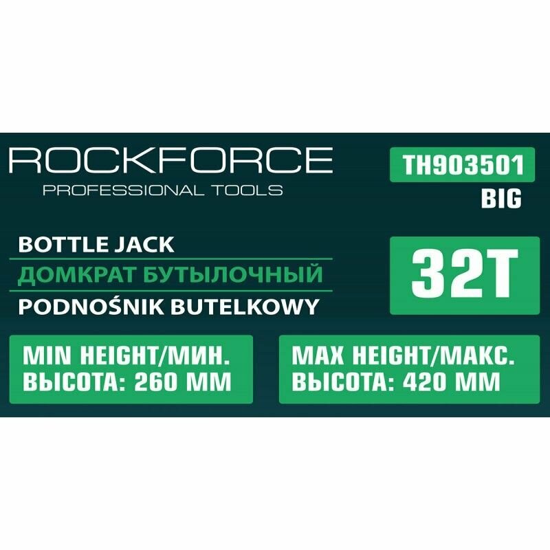 Домкраты Домкрат бутылочный 32т RockForce RF-TH903501 BIG