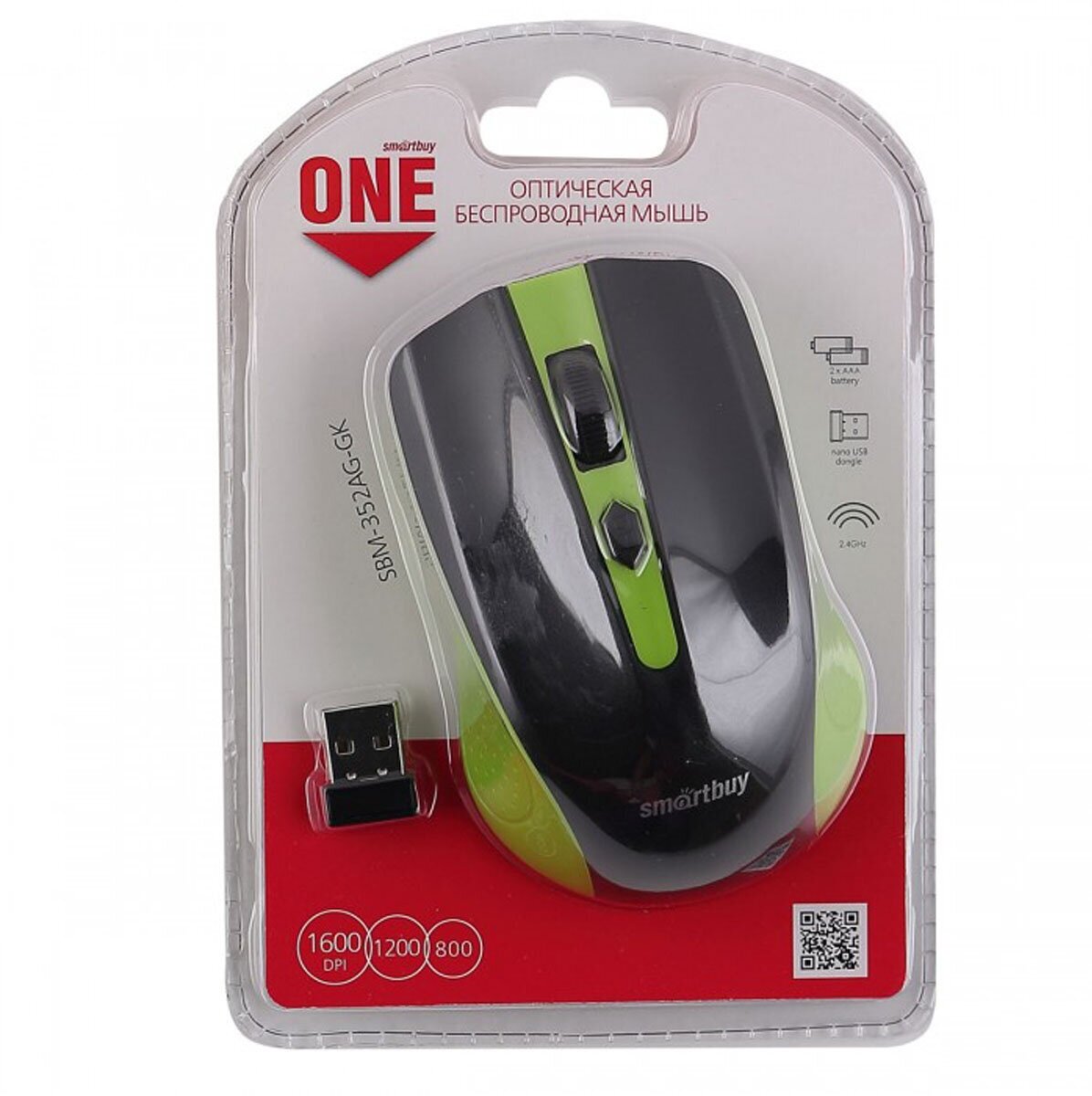 Мышь оптическая беспроводная SmartBuy ONE 352, зеленая и, черная, 3 кнопки+колесо (SBM-352AG-GK)