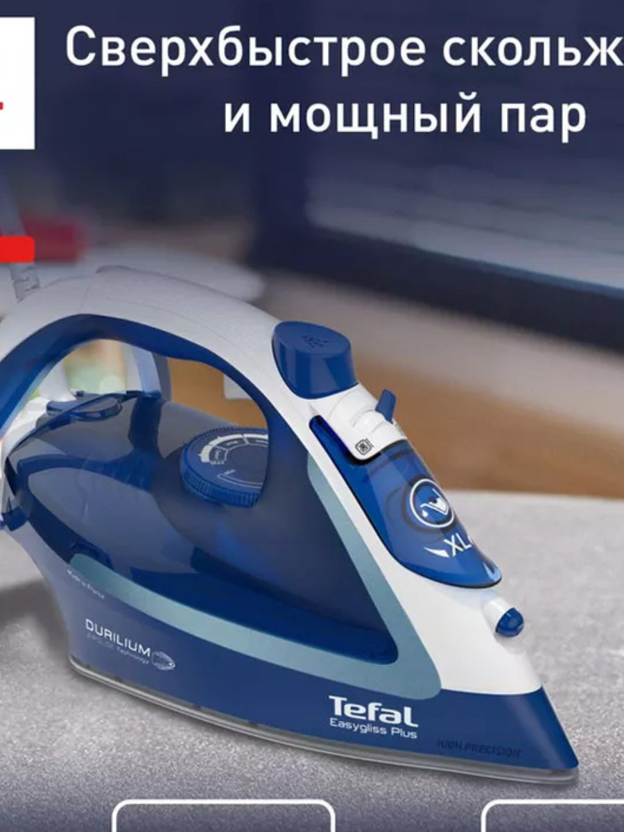 Утюг Tefal FV5735E0 синий/белый, мощность 2500Вт, подошва утюга Durilium Airglide, паровой удар 220г, емкость для воды 270мл, длина шнура 2м 6 399 ₽ Подробнее