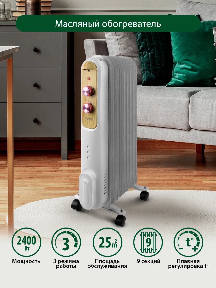 Масляные радиаторы Масляный обогреватель для дома, 9 секций, 2400 ВТ