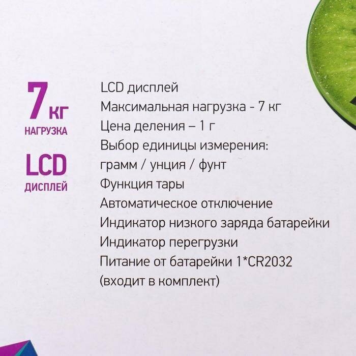 Весы кухонные электронные HS-3007S, 7 кг, лайм, 003043 HOMESTAR (Артикул: 4100012766)
