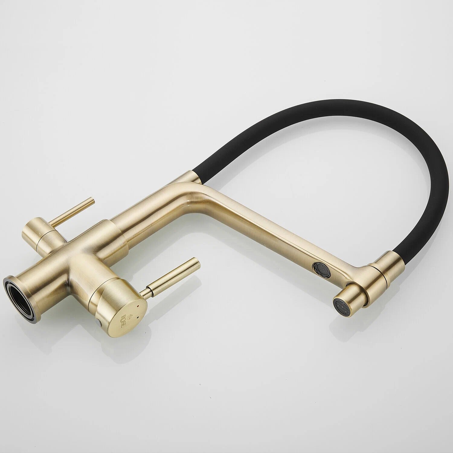 Смеситель Rose R658Y для кухонной мойки с гибким изливом и подключением к фильтру с питьевой водой