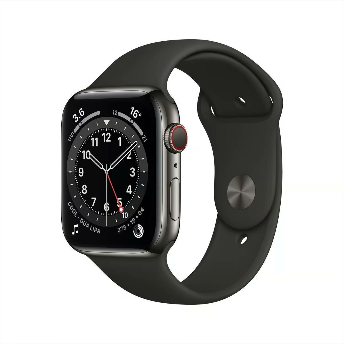 Умные часы Apple Watch Series 6 GPS + Cellular, 44mm Graphite Stainless Steel Case with Black Sport Band