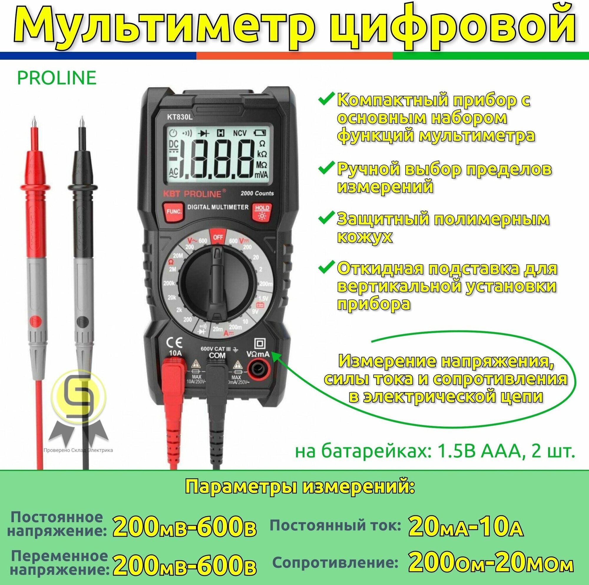 Мультиметр цифровой KT 830L PROLINE , КВТ 79127 (1 шт.)