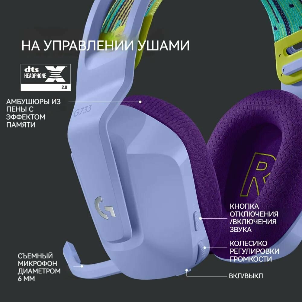 Logitech G733 Lightspeed Игровые наушники, сиреневый .