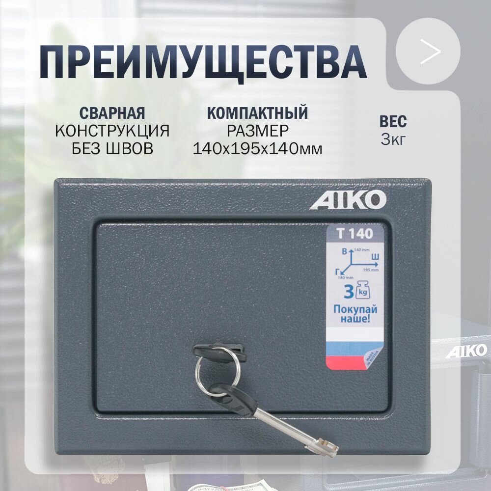 Сейфы Сейф для хранения денег, ценностей и документов AIKO Т-140, 140x195x140 мм с ключевым замком
