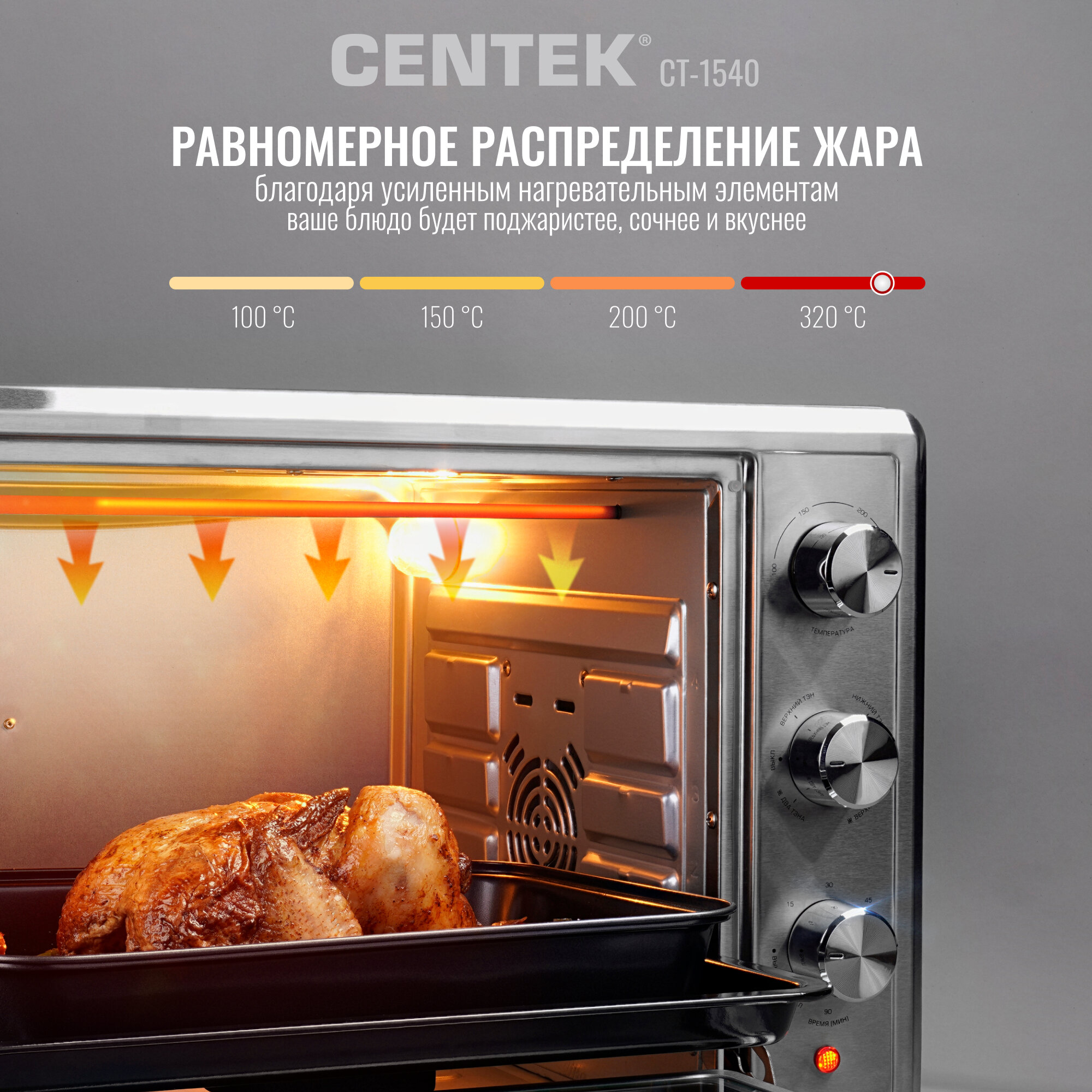 Электродуховка Мини-печь с конвекцией Centek CT-1540: 50л, 2000Вт, таймер 90мин, 4 режима работы, духовой жарочный шкаф электрический