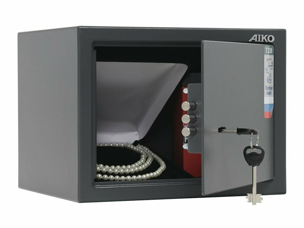 Сейфы Сейф для хранения денег, ценностей и документов AIKO Т-230, 230x310x250 мм с ключевым замком