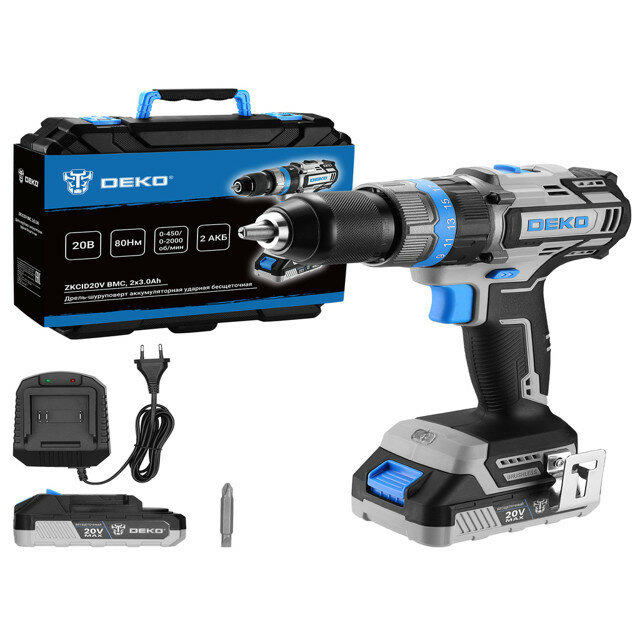 Дрель/шуруповерт Дрель-шуруповерт ударная DEKO ZKCID20V 80Нм 20В Li-Ion 3,0Ач 2АКБ бесщеточный