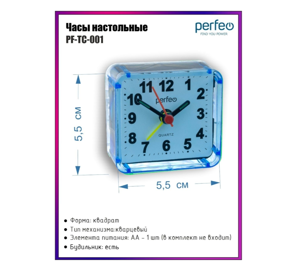 Настольные часы Будильник Perfeo PF-TC-001 (синий)