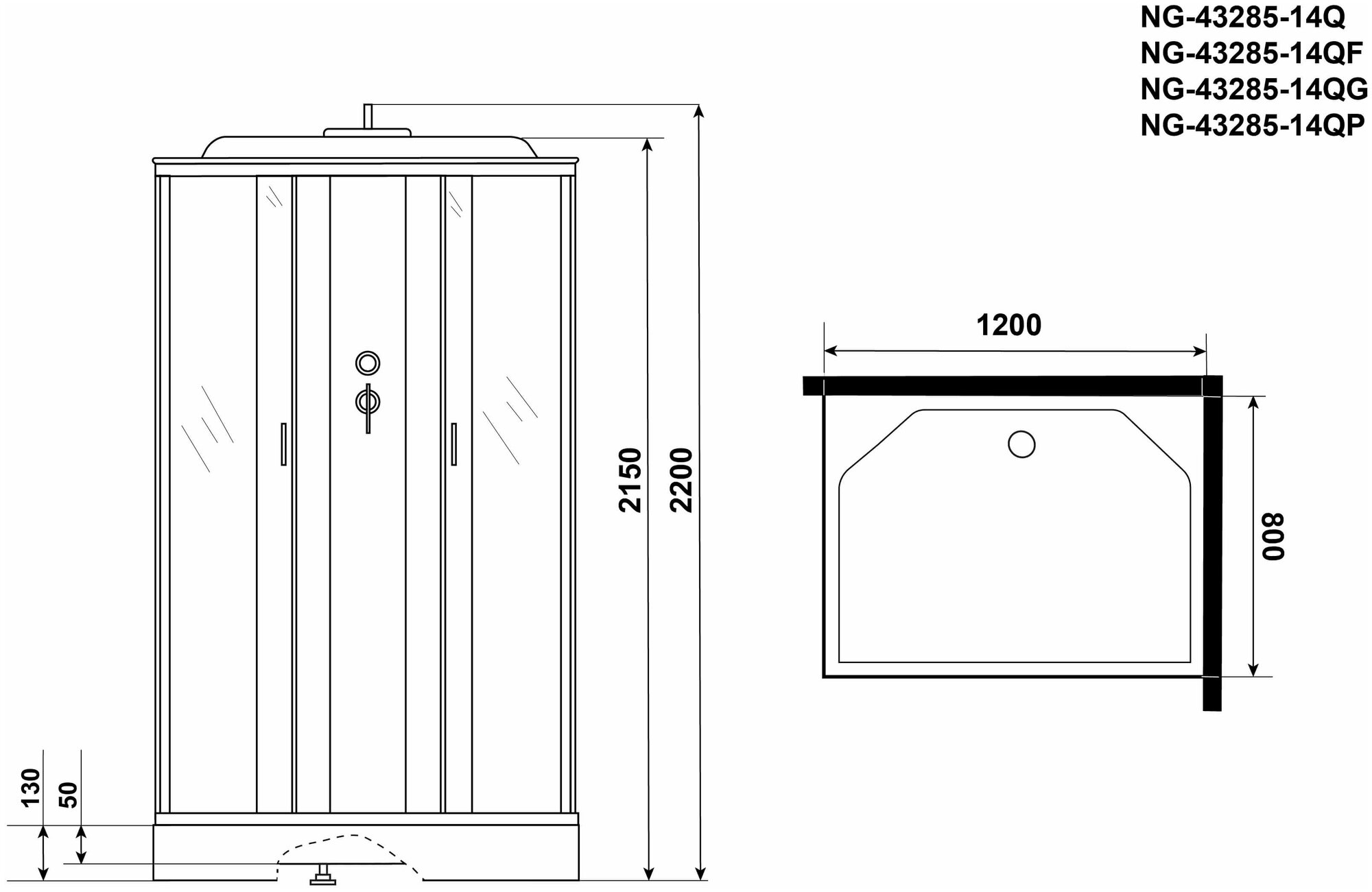 Душевая кабина ng-33984-14q (900х800х2150) средний поддон (26см) стекло матовое