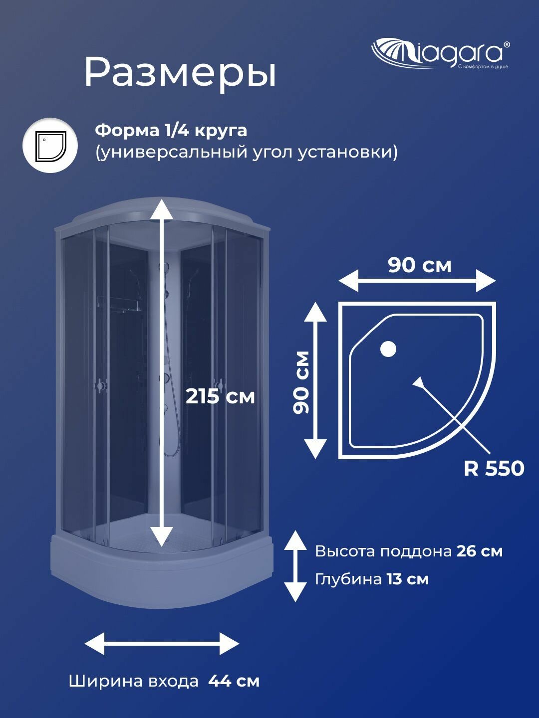 Душевая кабина Niagara Eco 90x90 низкий поддон, тонированная, без крыши 36 500 ₽ Подробнее