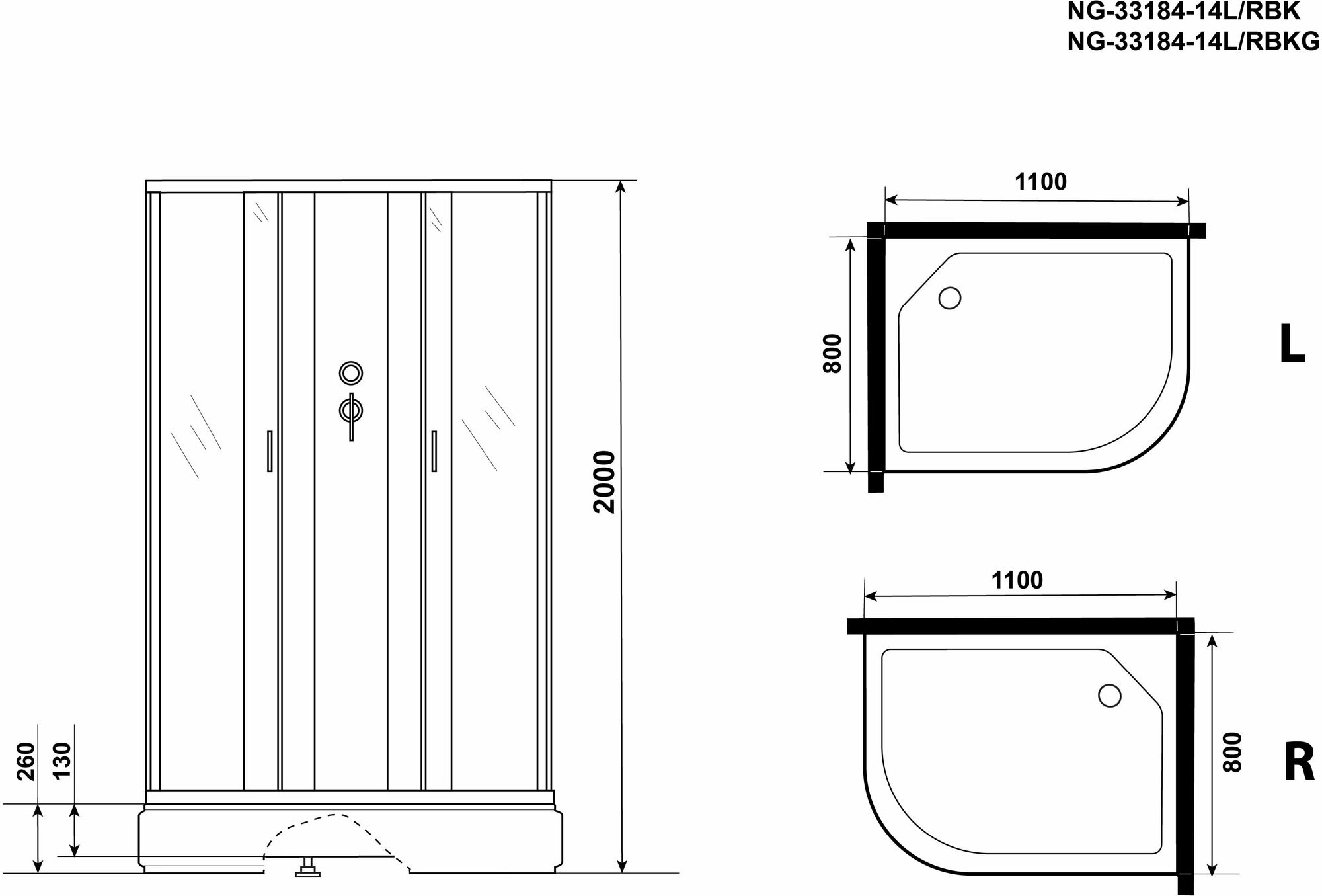 Душевая кабина Niagara NG-33184-14LBK 110х80 см, с матовыми стеклами, левосторонняя