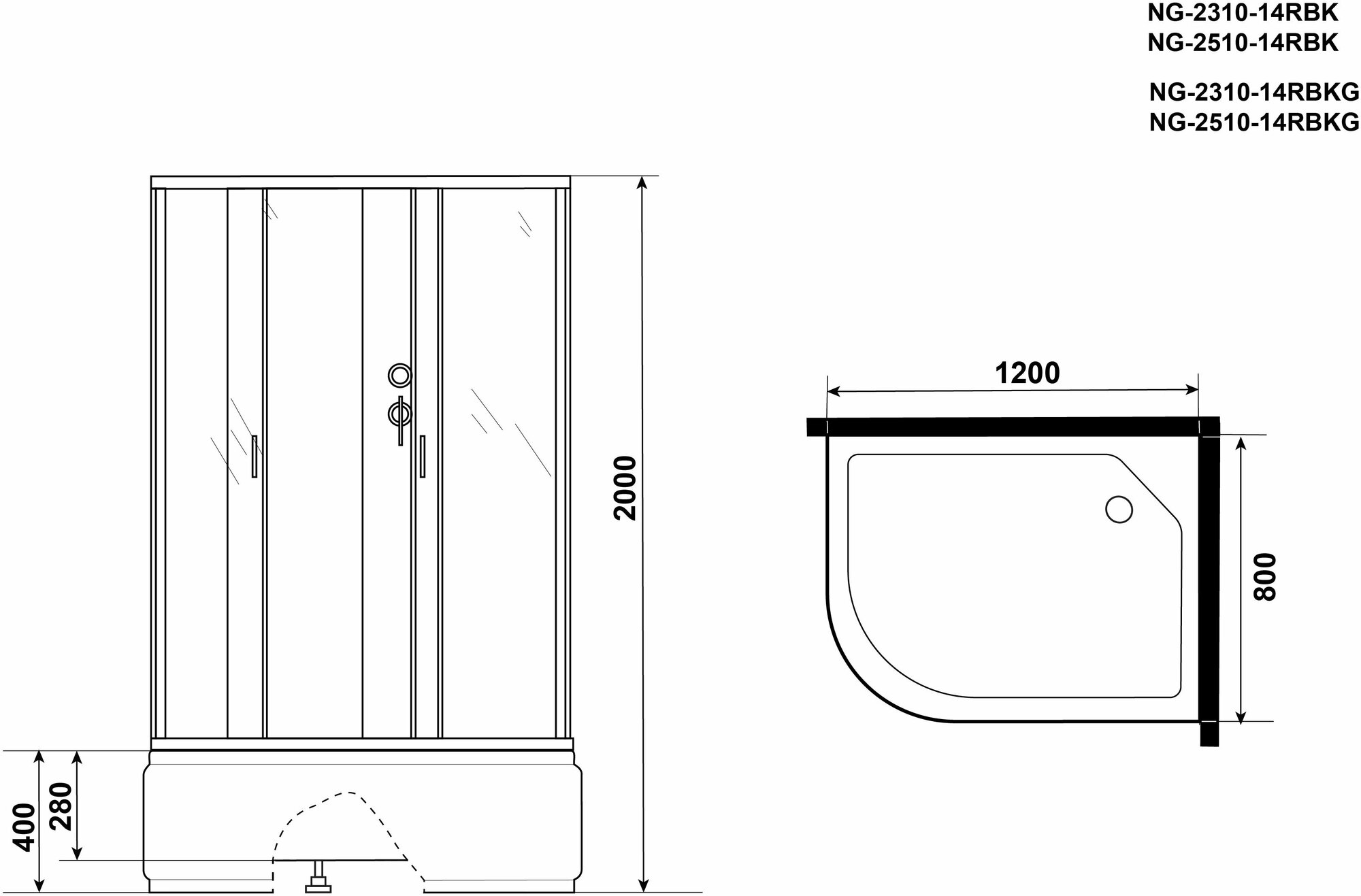 Душевая кабина Душевая кабина ng-2310-14rbkg (1200х800х2000) высокий поддон(40см) стекло матовое