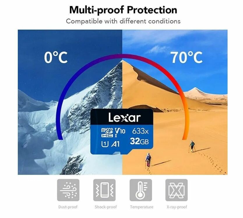 Карта памяти Lexar High-Performance 633x Blue microSDHC 32GB UHS-I U1 V10 A1, R 100 МБ/с с адаптером