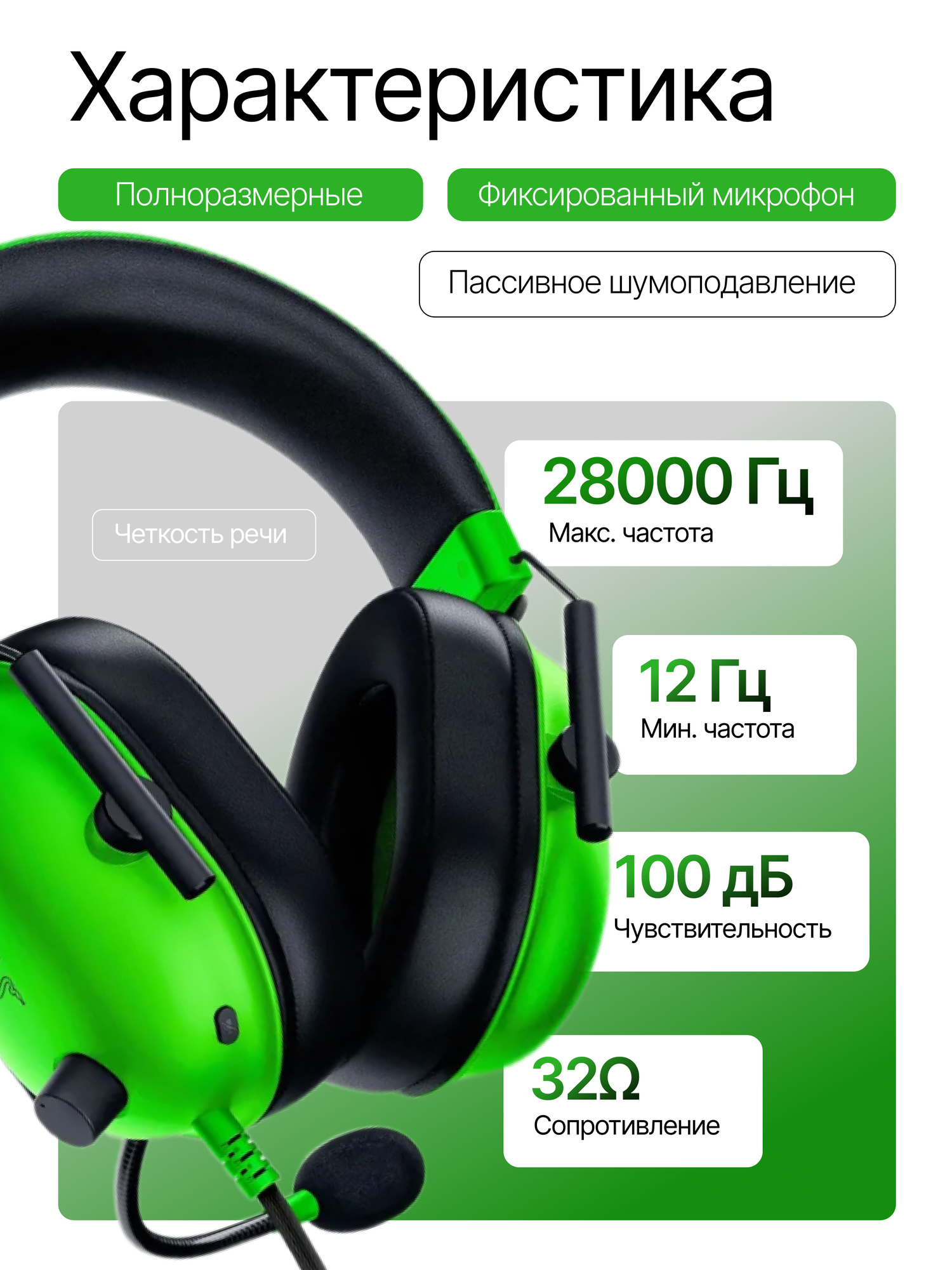Компьютерная гарнитура Razer BlackShark V2 X Green 4 390 ₽ Подробнее