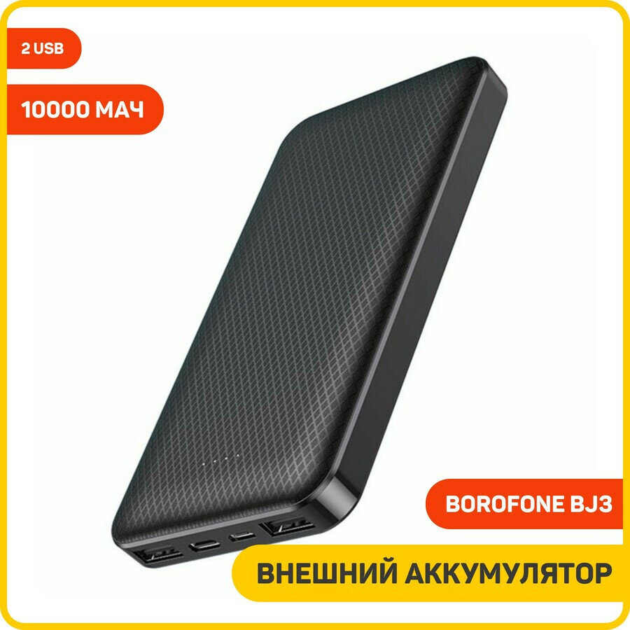 Внешний аккумулятор (Power Bank) Borofone BJ3 для 10000mAh (2A, 2USB, MicroUSB, Type-C) (черный)
