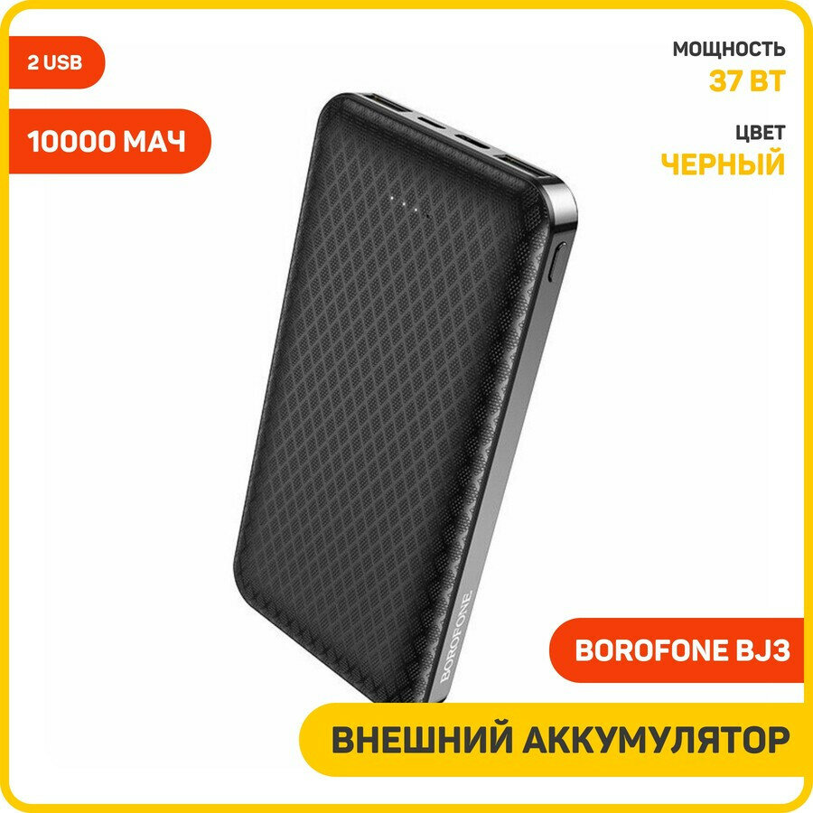 Внешний АКБ BOROFONE BJ3 Minimalist 10000mAh, 2хUSB, 2A, LED, Li-Pol (черный)