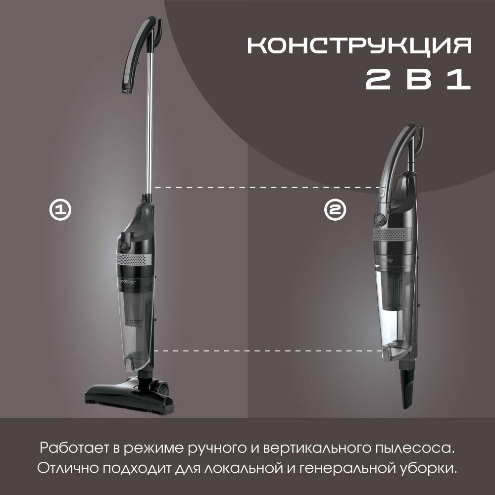 Пылесос вертикальный для дома Endever VC-293 2в1 вертикальный/ручной / 650 Вт / мощность всасывания 120 Вт / пылесборник 1,5л