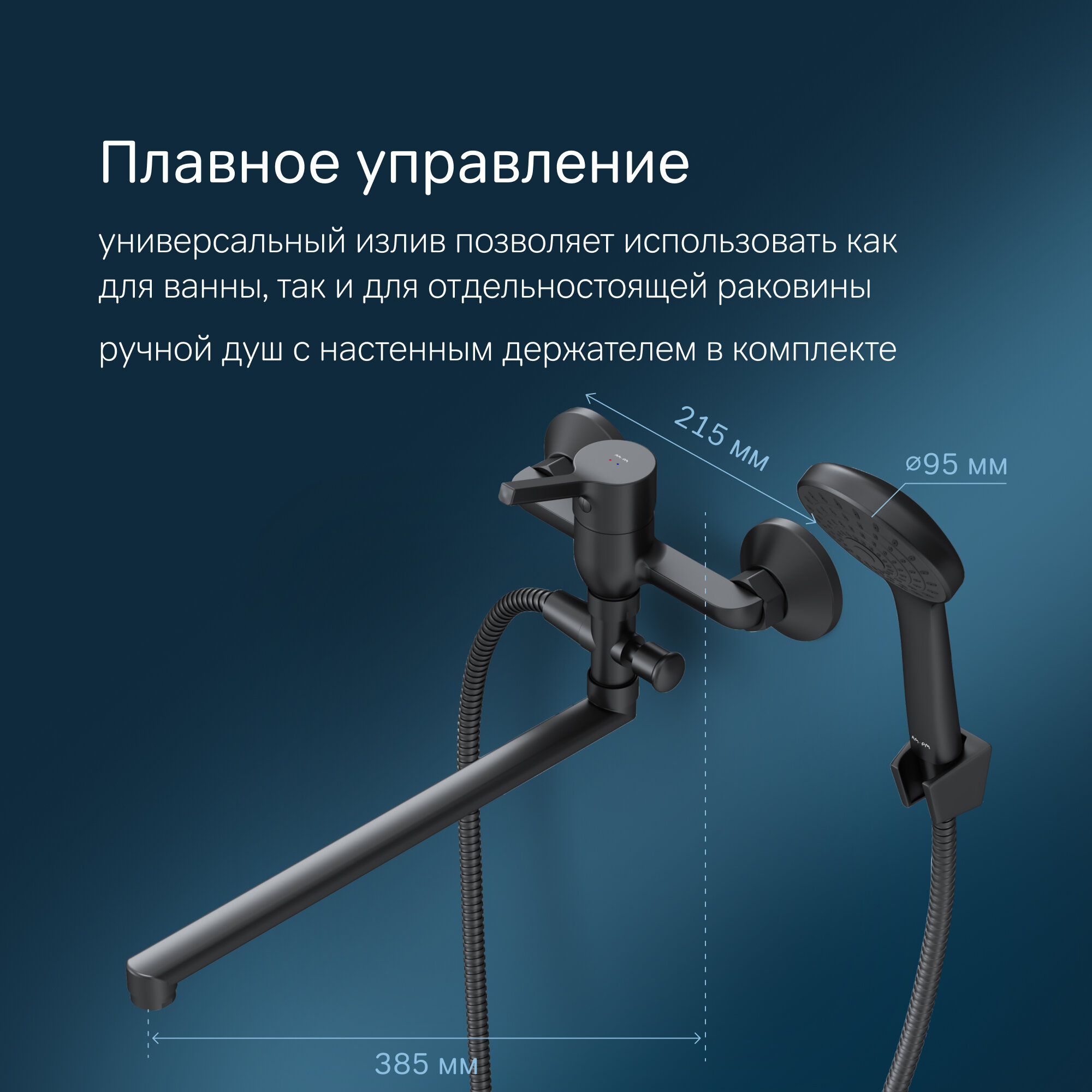 Смеситель для ванны с душем AM.PM X-Joy, с длинным изливом 350 мм, латунь, черный 5 990 ₽ Подробнее