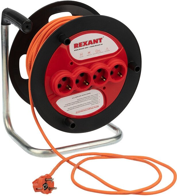 Сетевой фильтр / удлинитель Удлинитель-шнур на катушке Rexant ПВС 3х1.5, 50 м, 4 гнезда, с/з, 16 А, 3300 Вт, Ip20, оранжевый (Сд