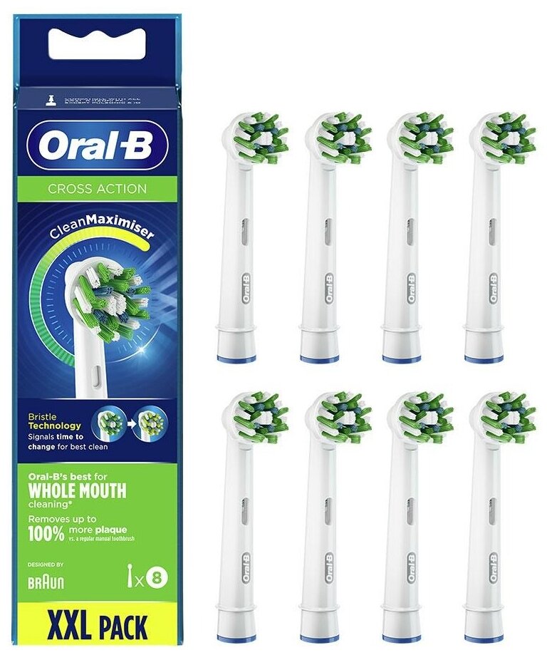 Набор насадок Oral-B Cross Action CleanMaximiser для электрической щетки, белый, 8 шт.