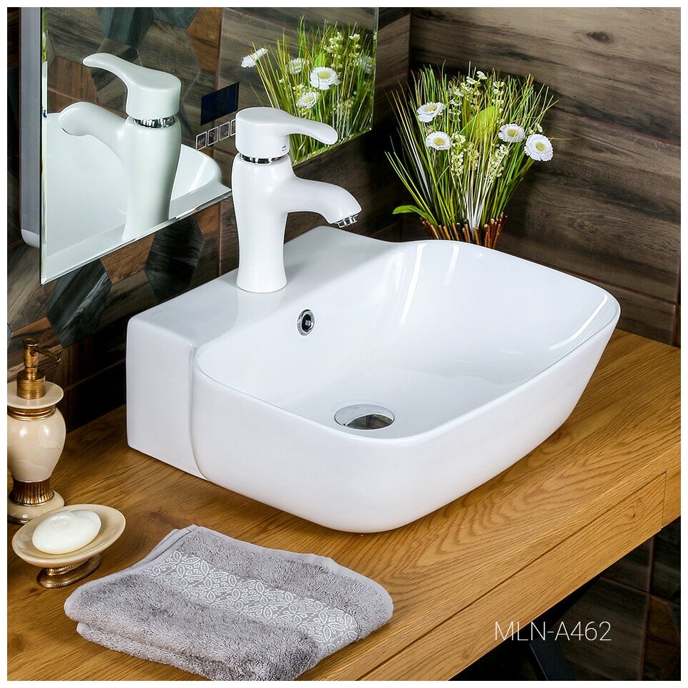 Умывальник Раковина для ванной накладная MLN-A462, белая, прямоугольной формы, фигурная, ширина 50,5 см