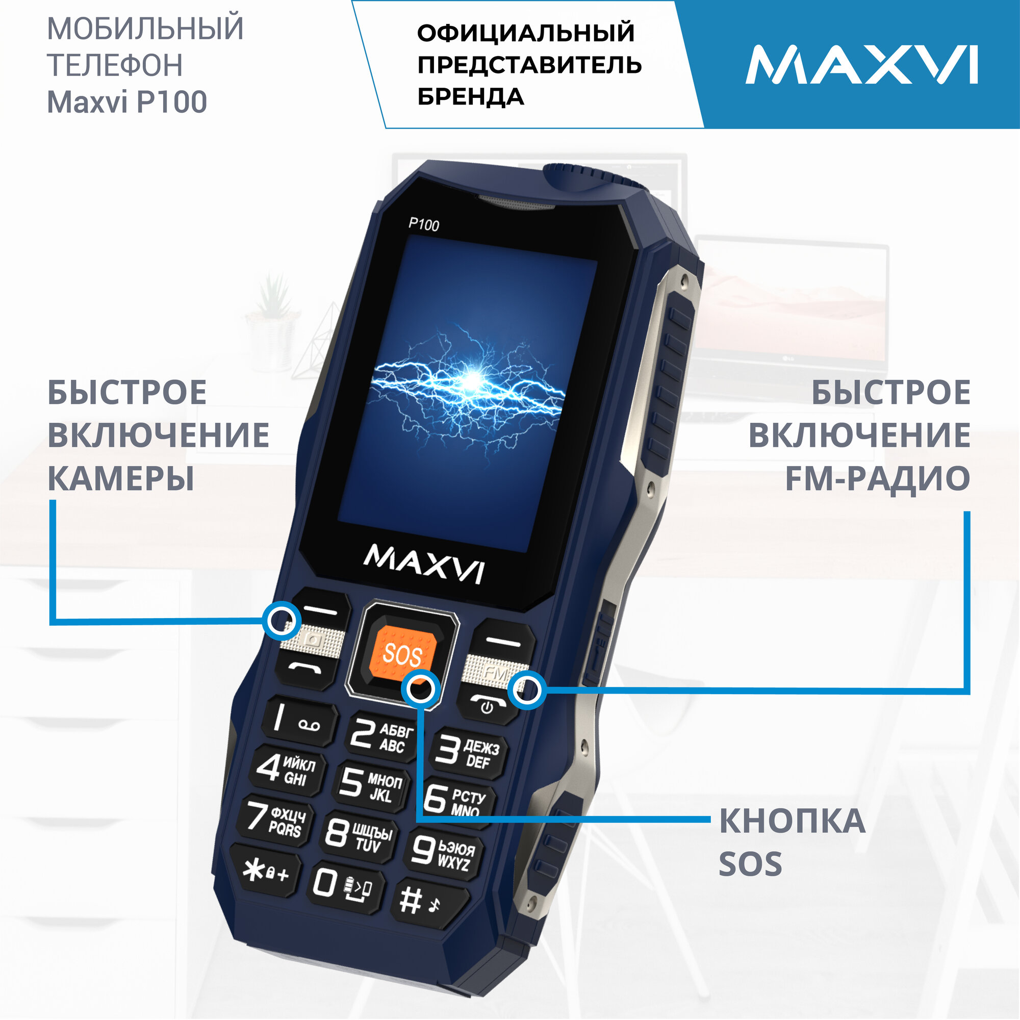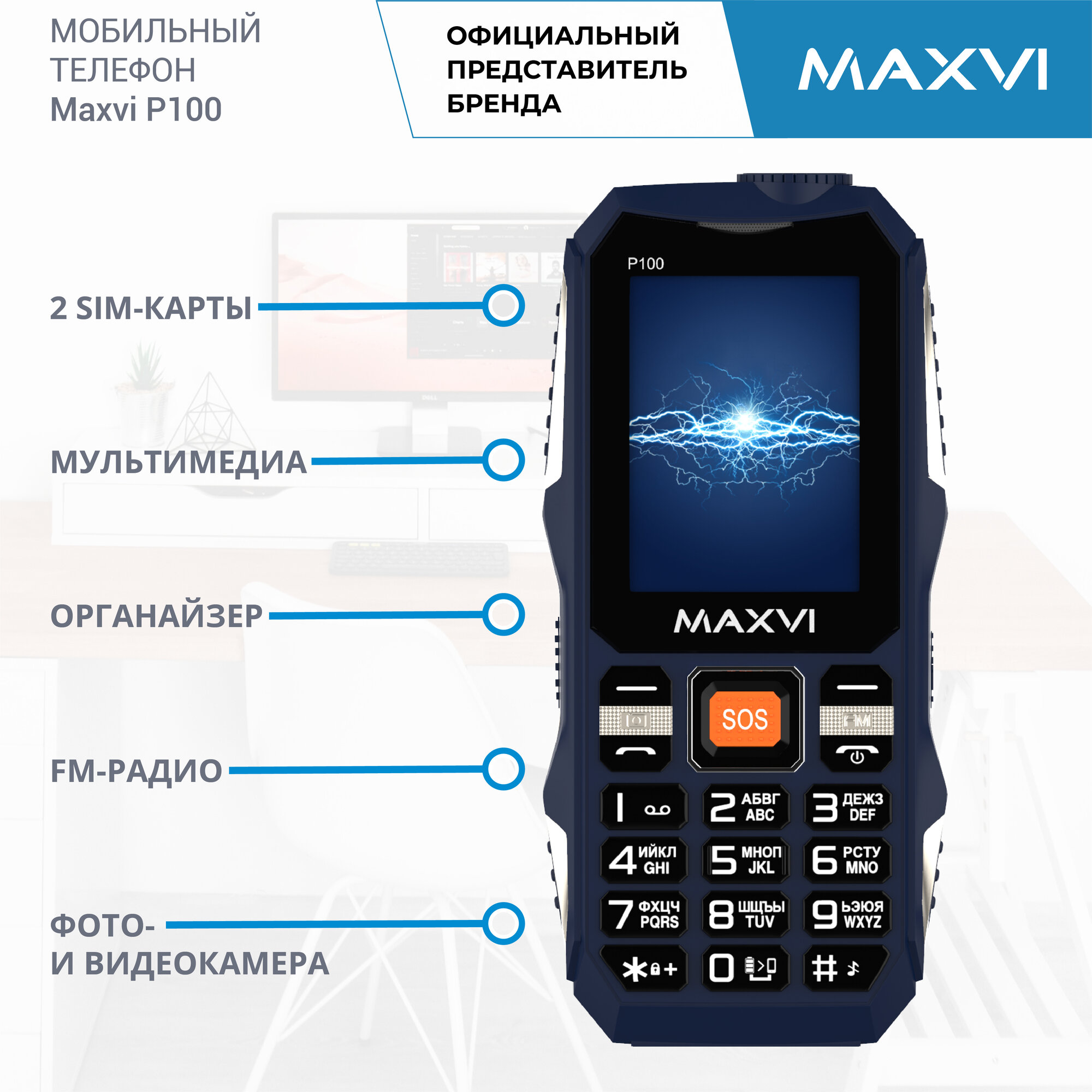 Мобильные телефоны maxvi p100 blue телефон мобильный