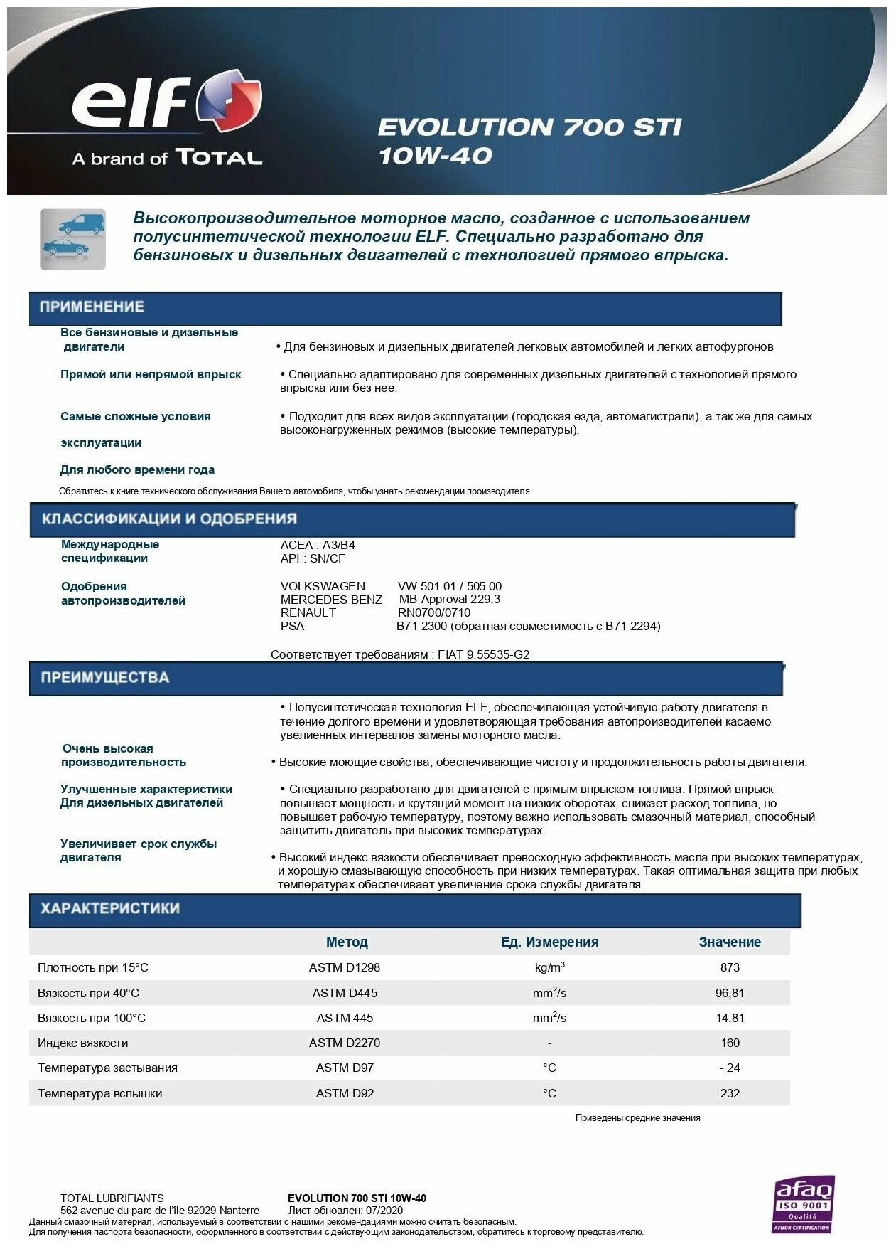 ELF 214120 ELF EVOLUTION 700 STI 10W-40 4л API SN/CF 1шт