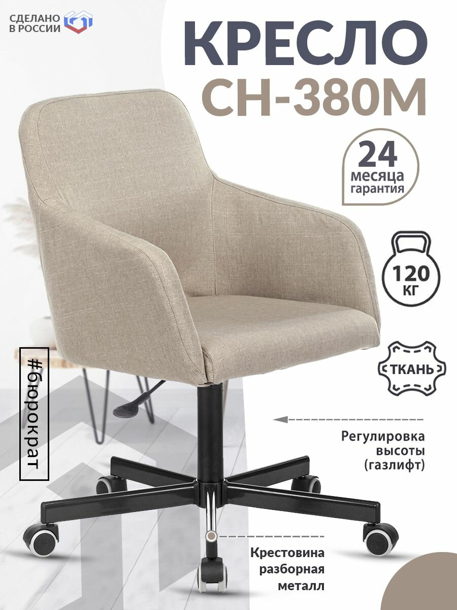 Кресло CH-380M, пятилучие металлическое, ткань, бежевое, 1430564