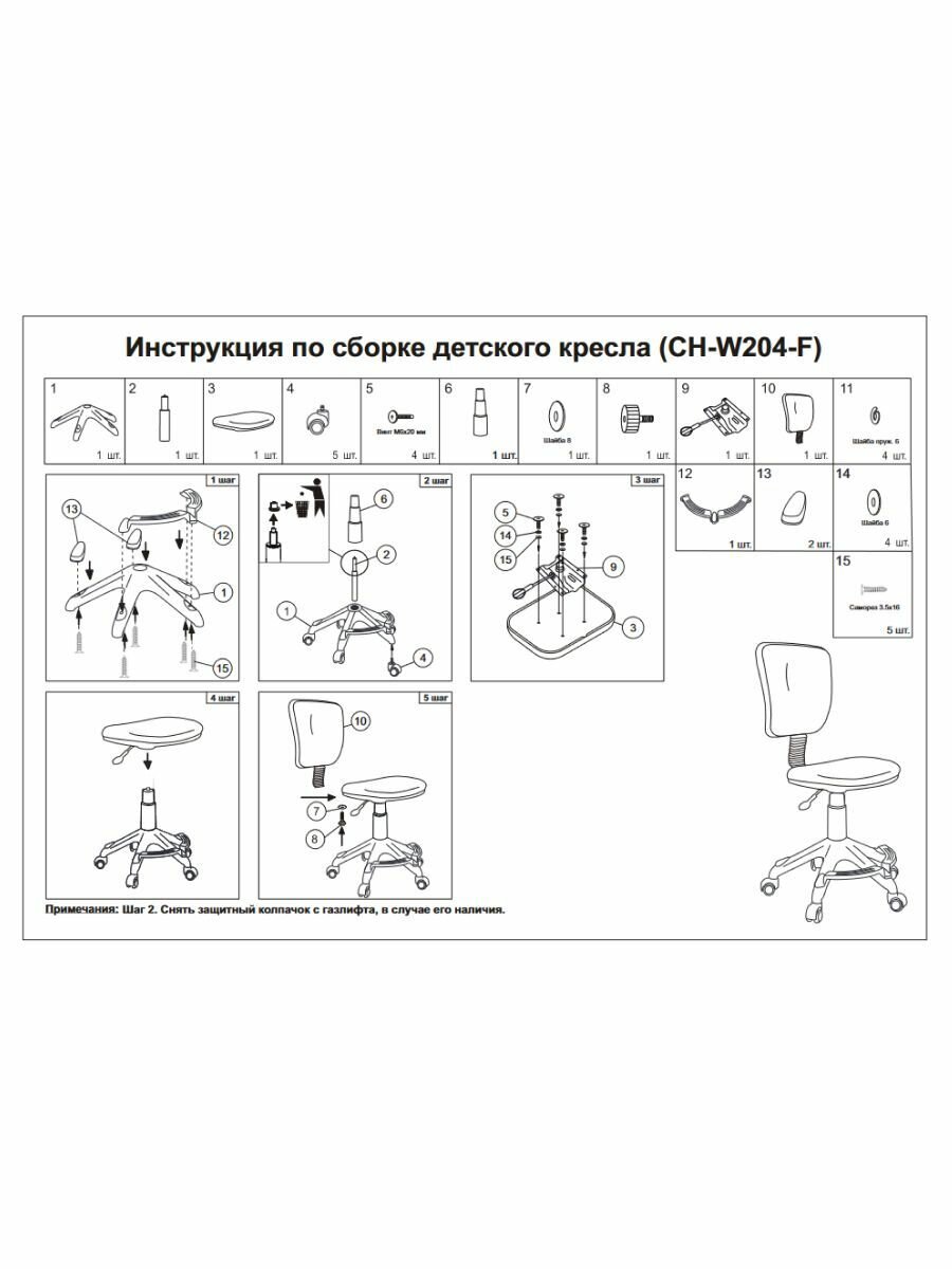 Кресло компьютерное детское Бюрократ W204-F с подставкой для ног, стул на колесиках без подлокотников, с низкой спинкой, ткань