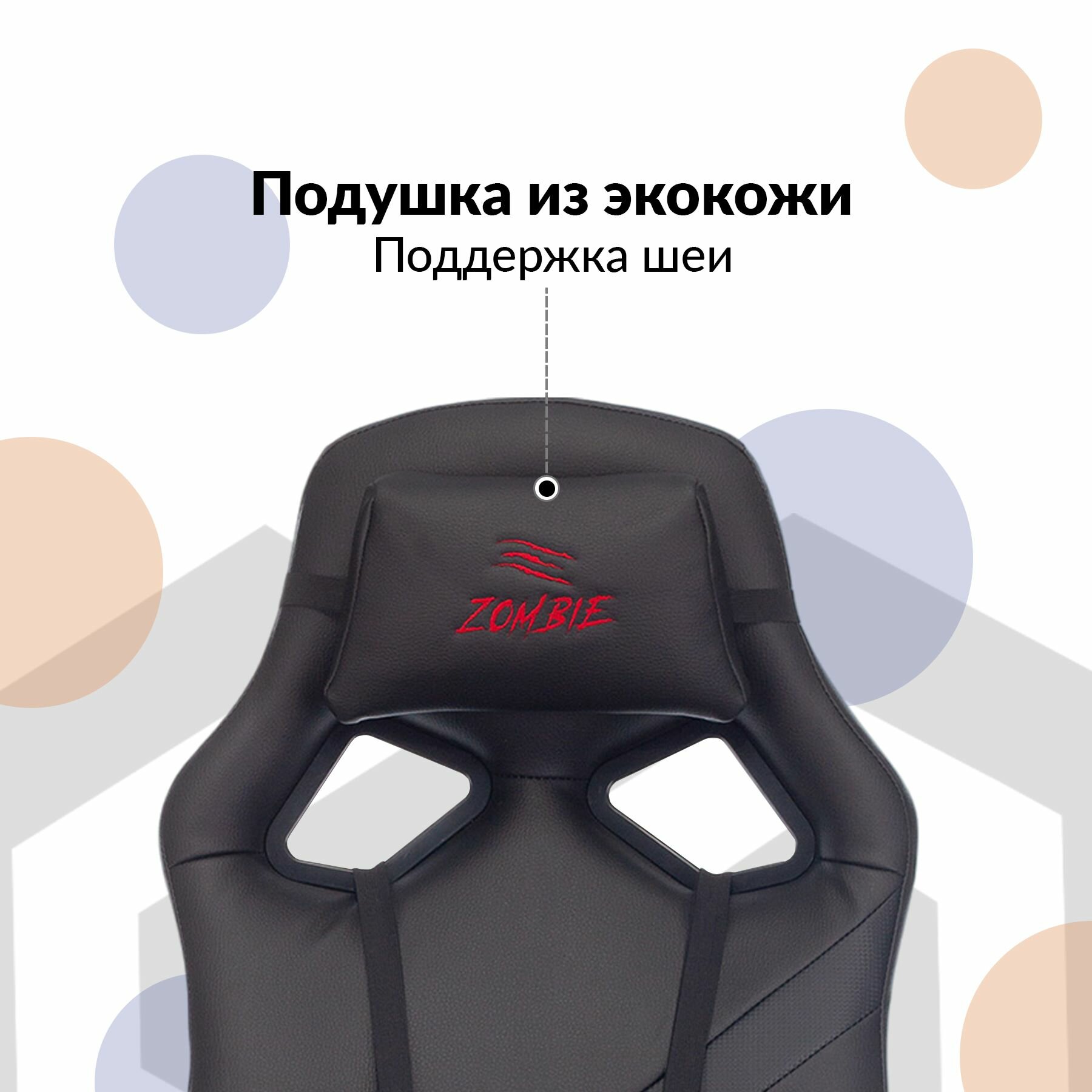 Кресло компьютерное игровое Zombie, экокожа, черное, красное, крестовина пластик - Кресло геймерское, с подголовником