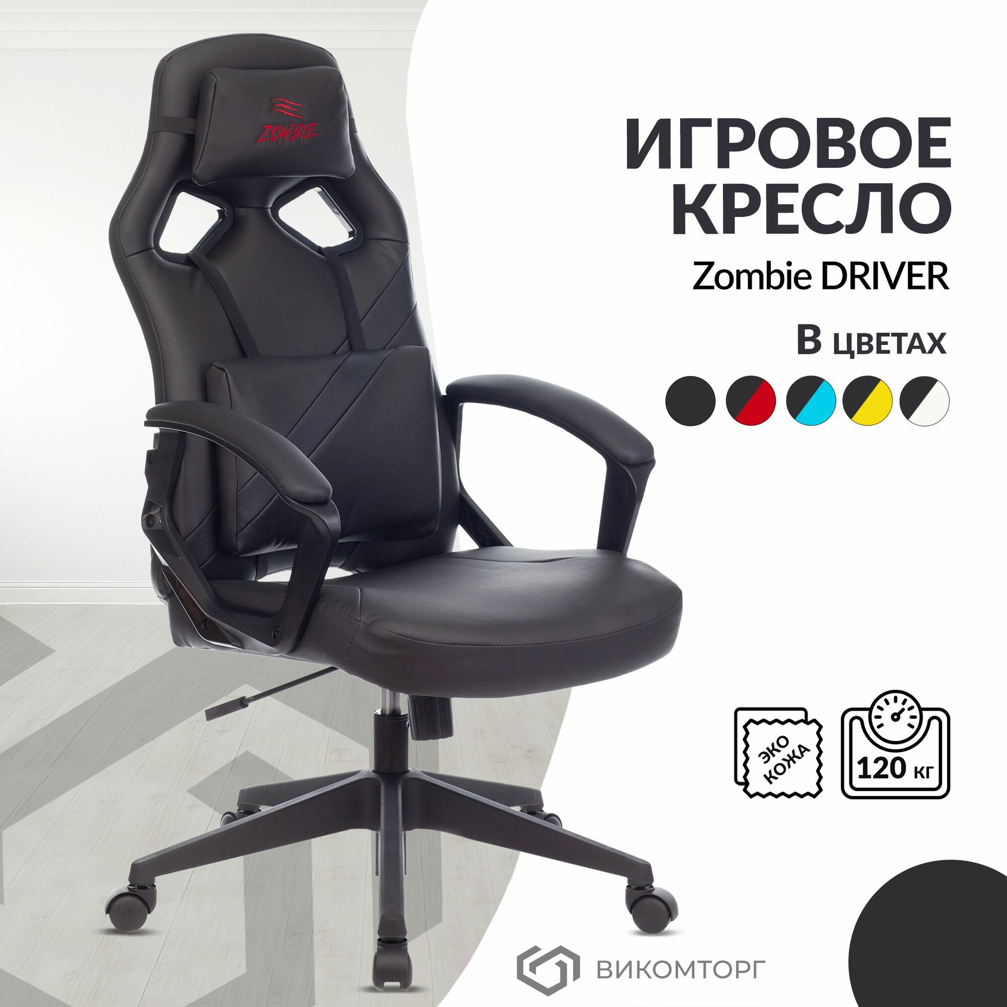 Кресло игровое Zombie Driver черный эко.кожа с подголов. крестовина пластик / Компьютерное геймерское кресло