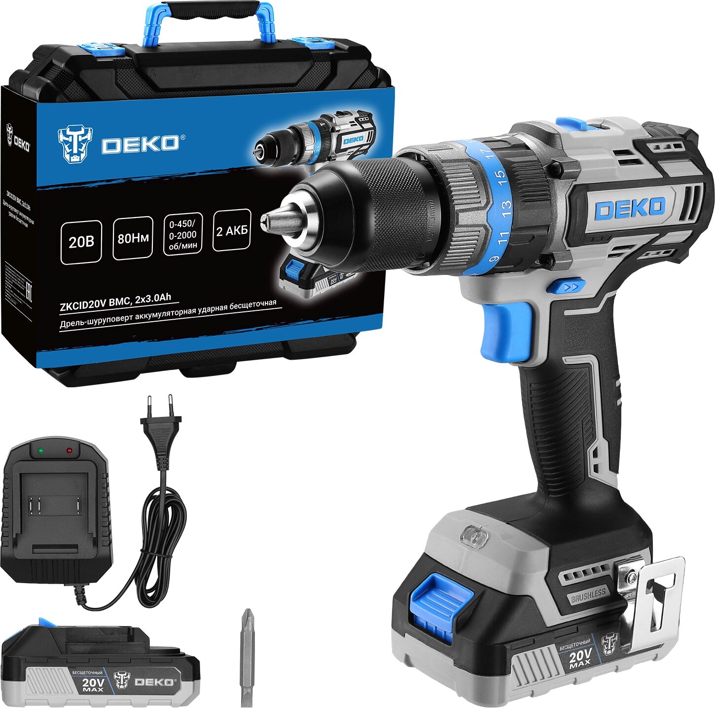 Аккумуляторная дрель-шуруповерт DEKO DKCD20 Black Edition SET 3 в кейсе + набор 63 инструмента 12 249 ₽ Подробнее