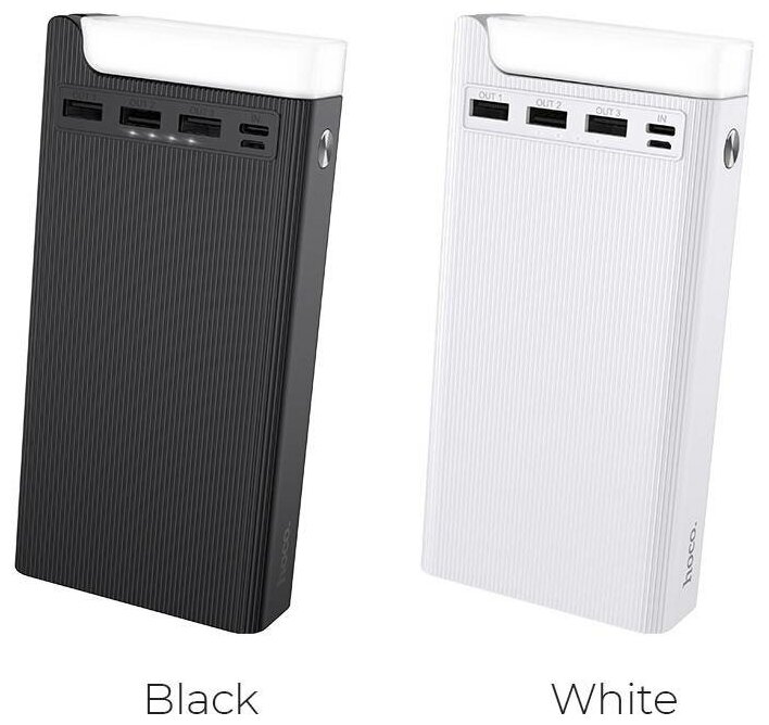 Аккумулятор внешний HOCO J62 Jove, 30000 mAh, индикатор, 3 USB выхода, Type-C, Micro USB, лампа, цвет белый